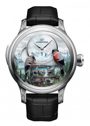 Hand-engraved and hand-painted 18-carat white gold birds |