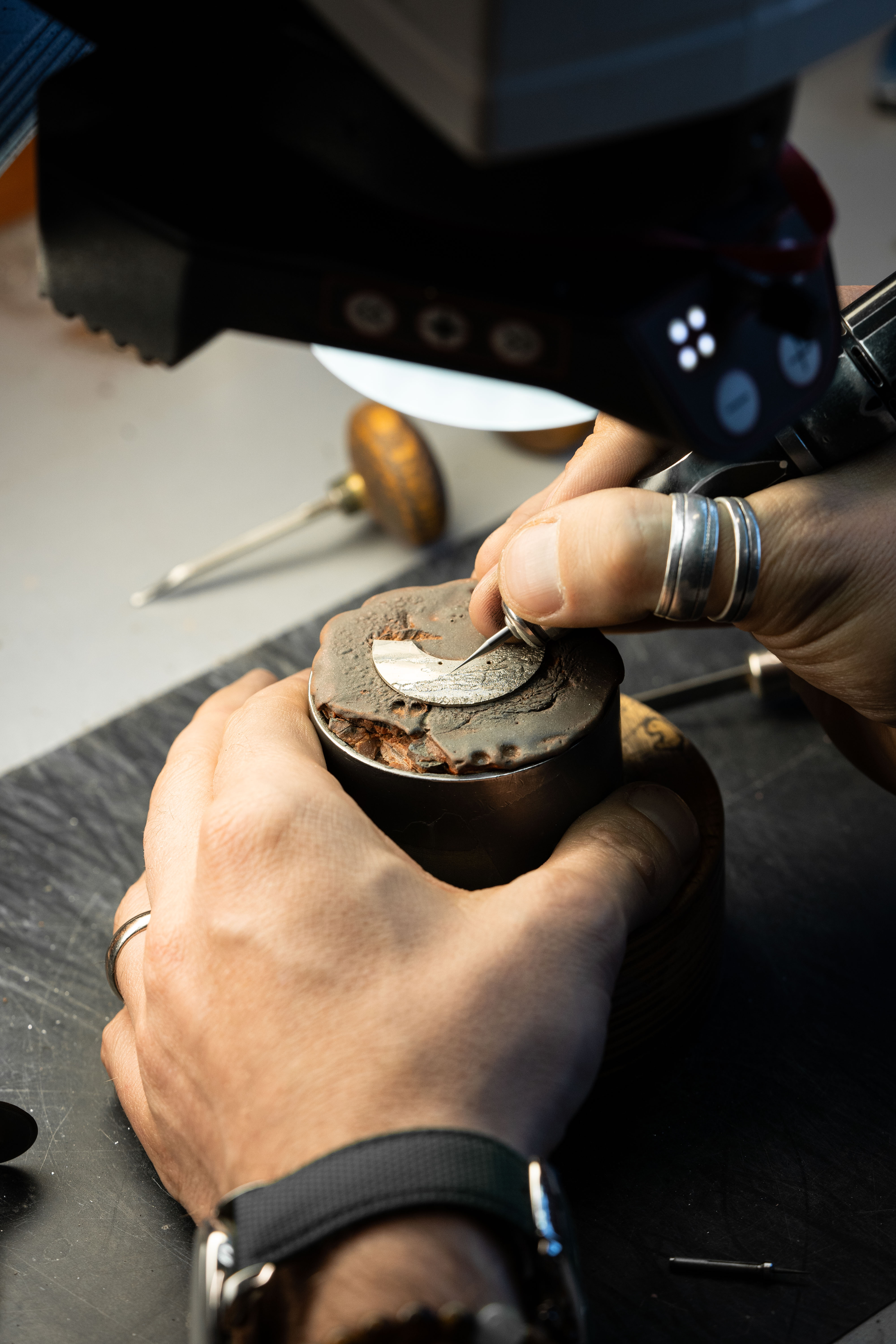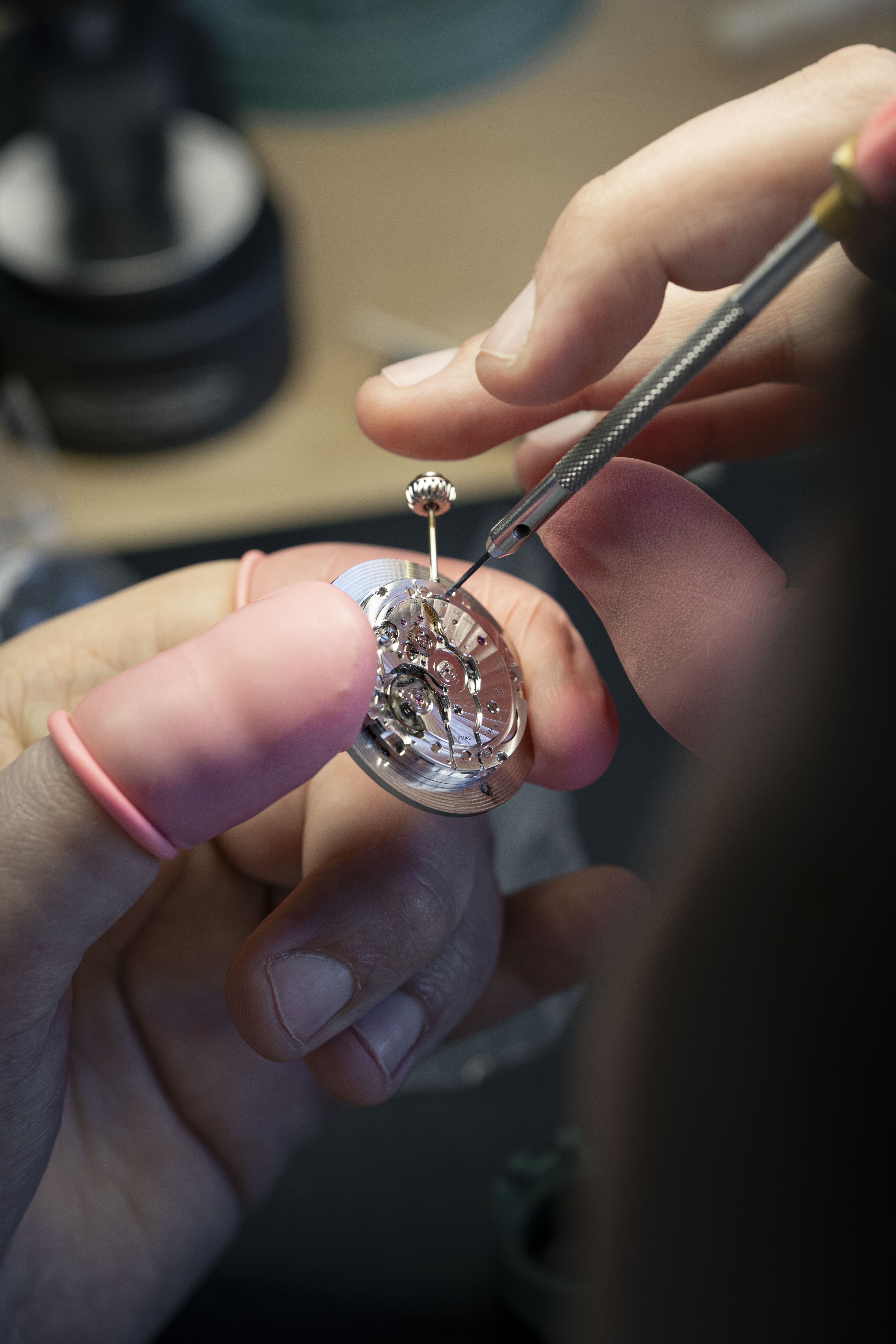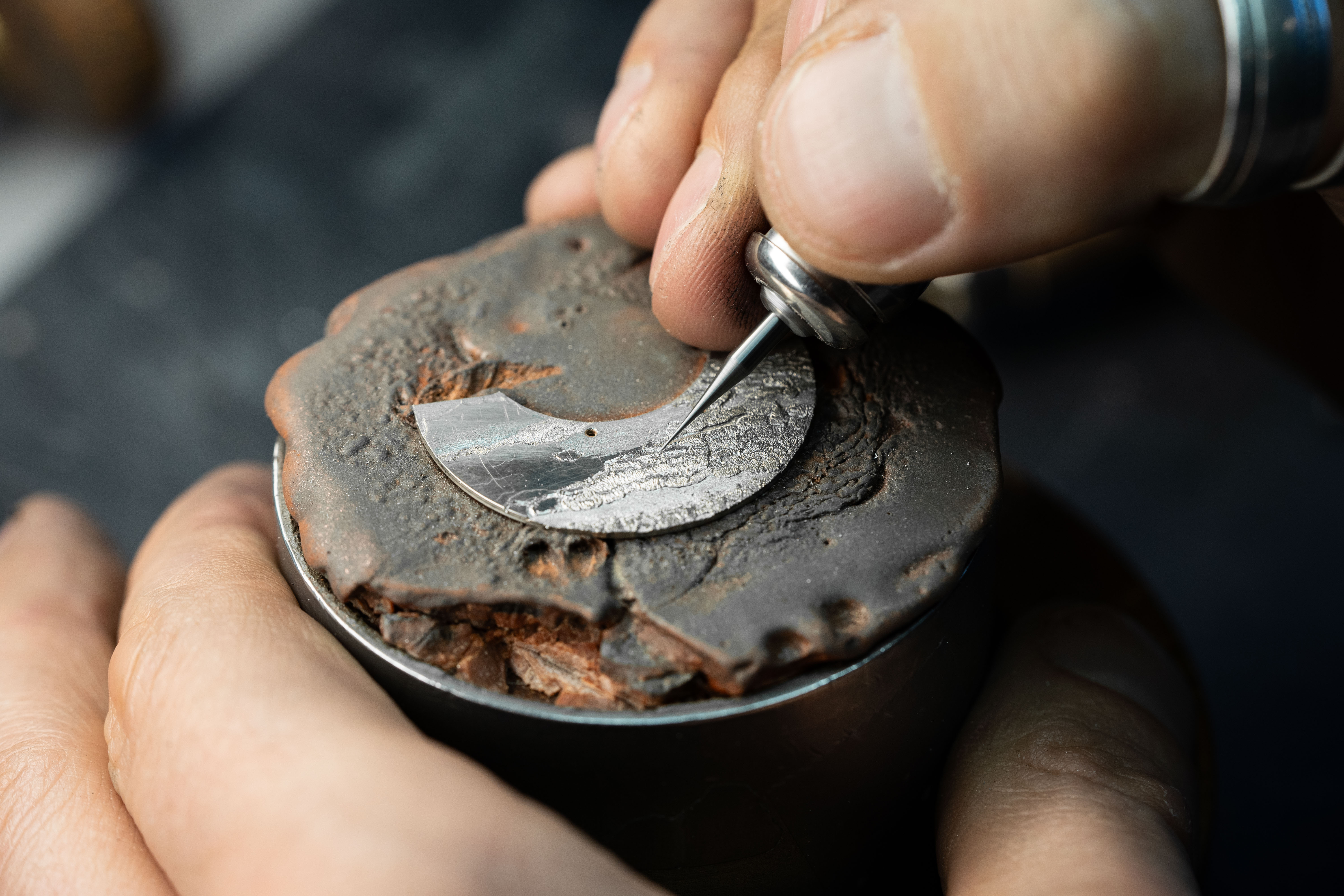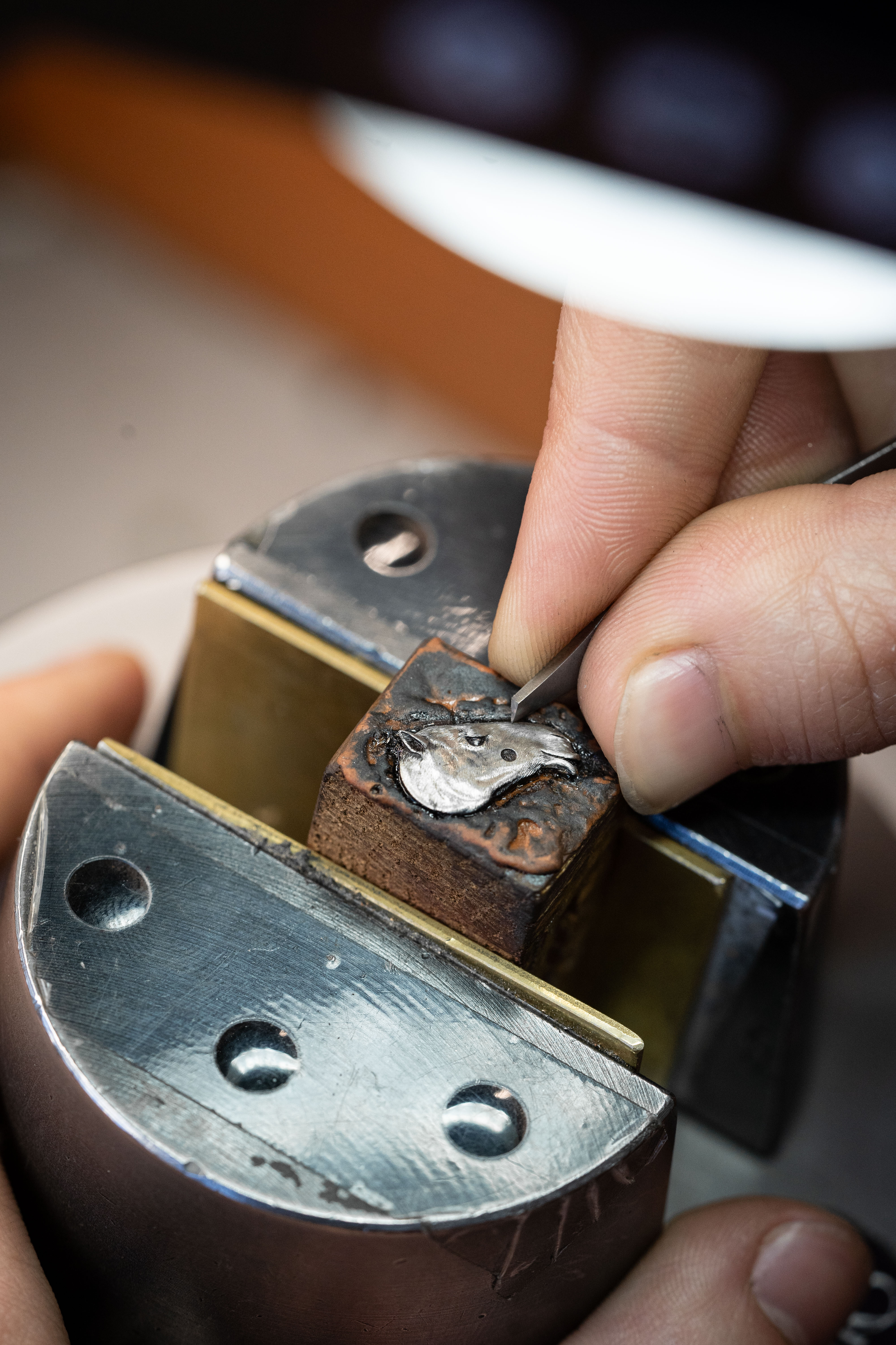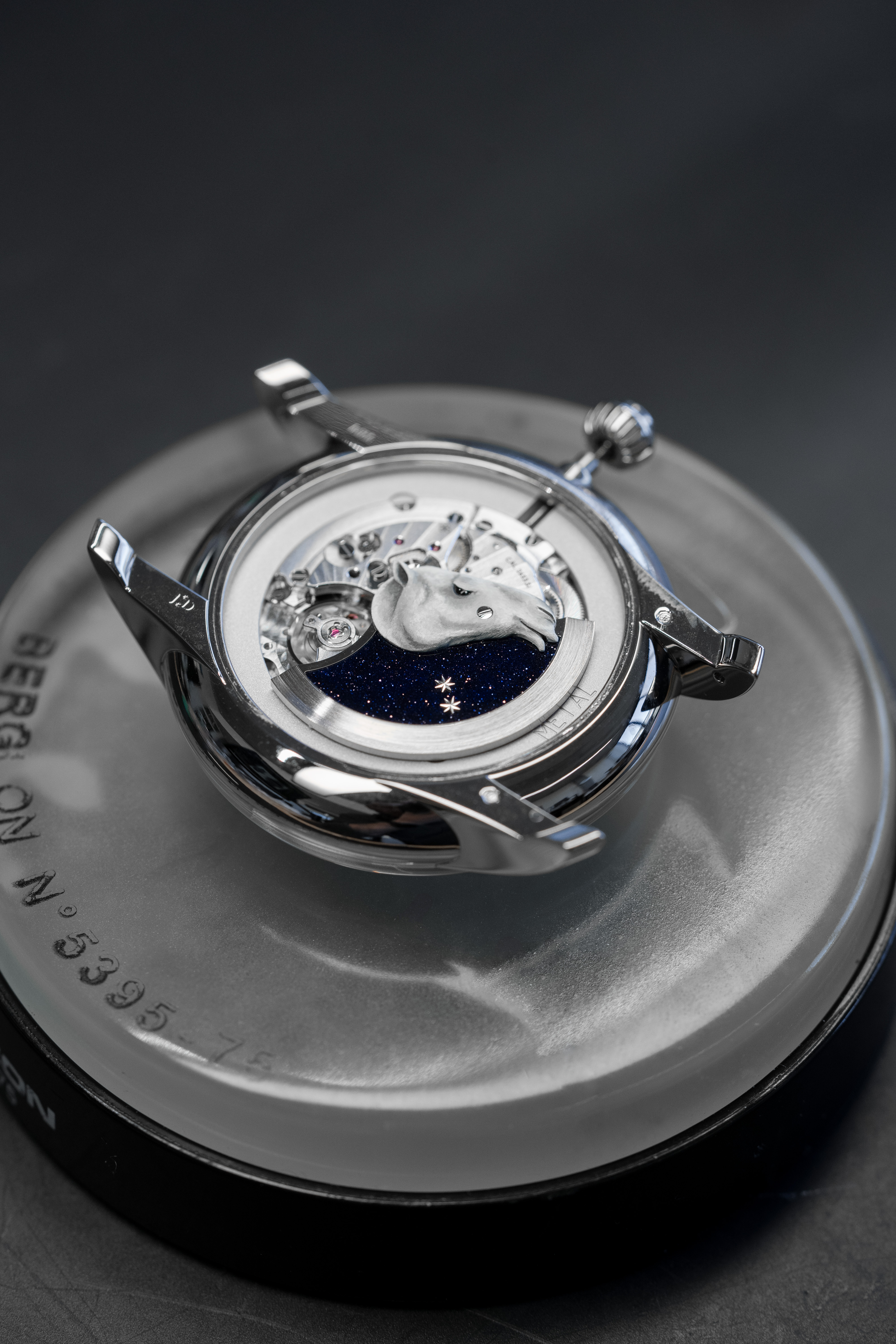 Based on the vision of one of its collectors, an aficionado of the most beautiful dromedaries, Jaquet Droz has created a unique piece for him, in a bespoke platinum case. Engraving and painting compete with precision on a mineral base of onyx and aventurine.