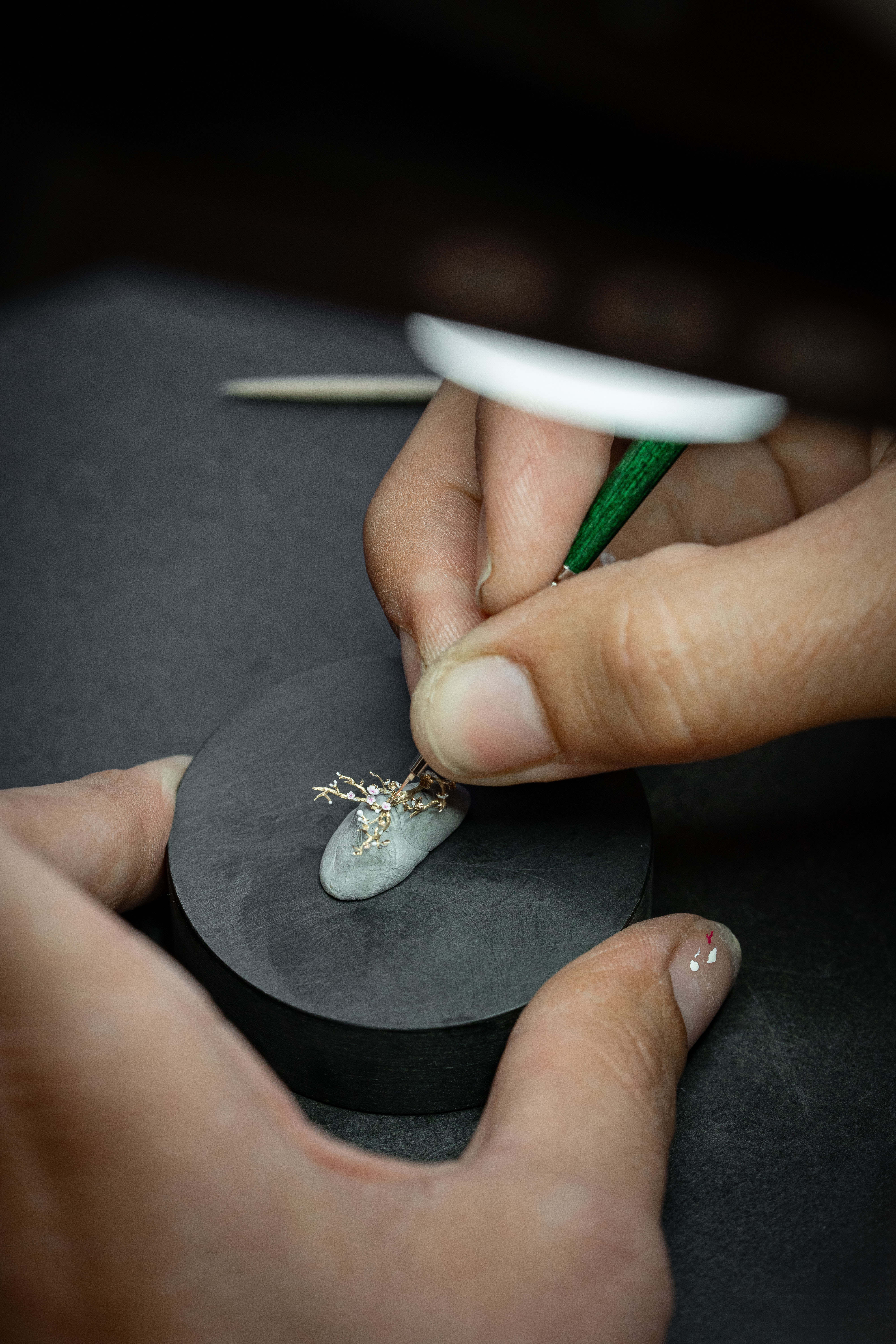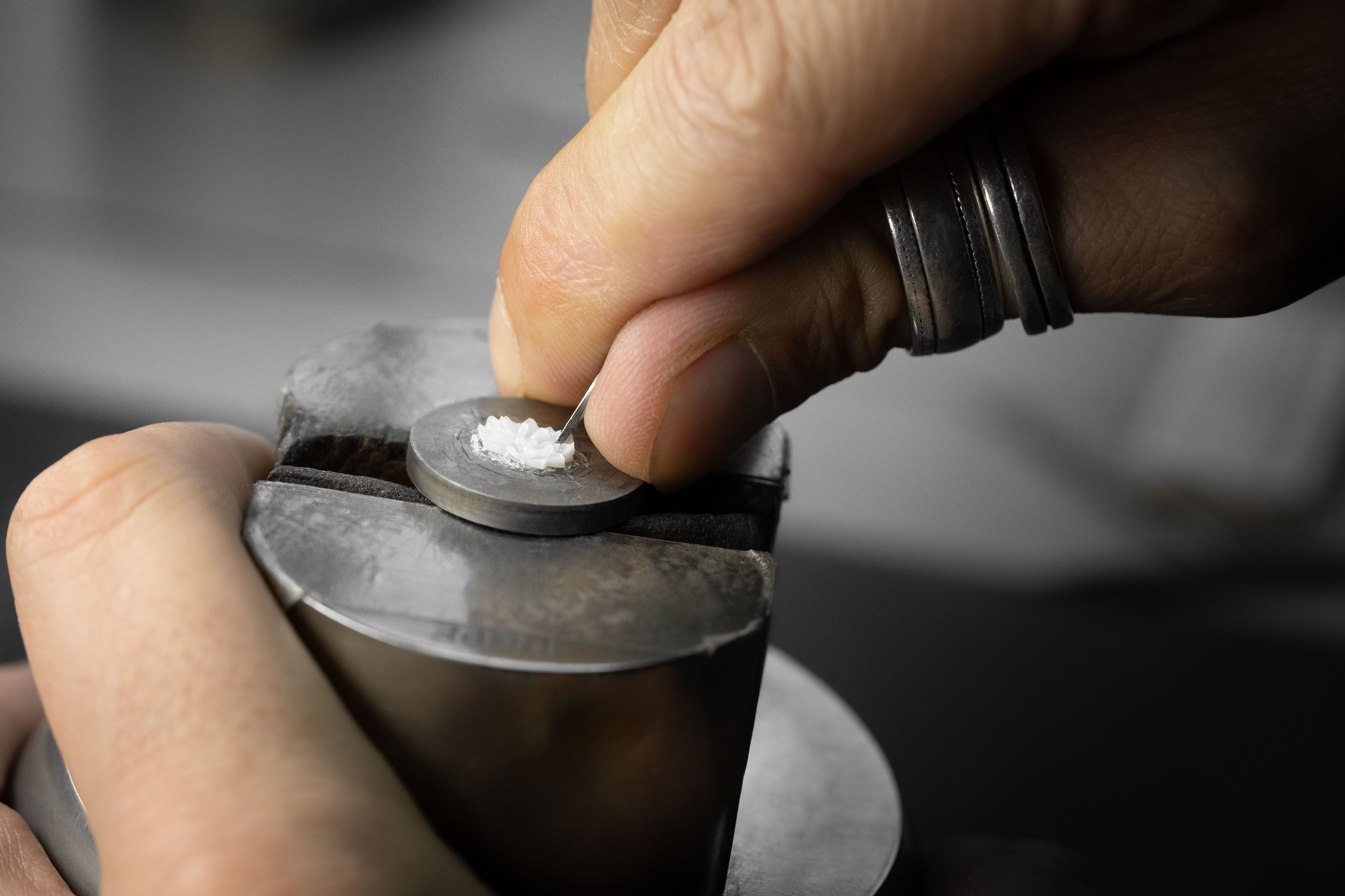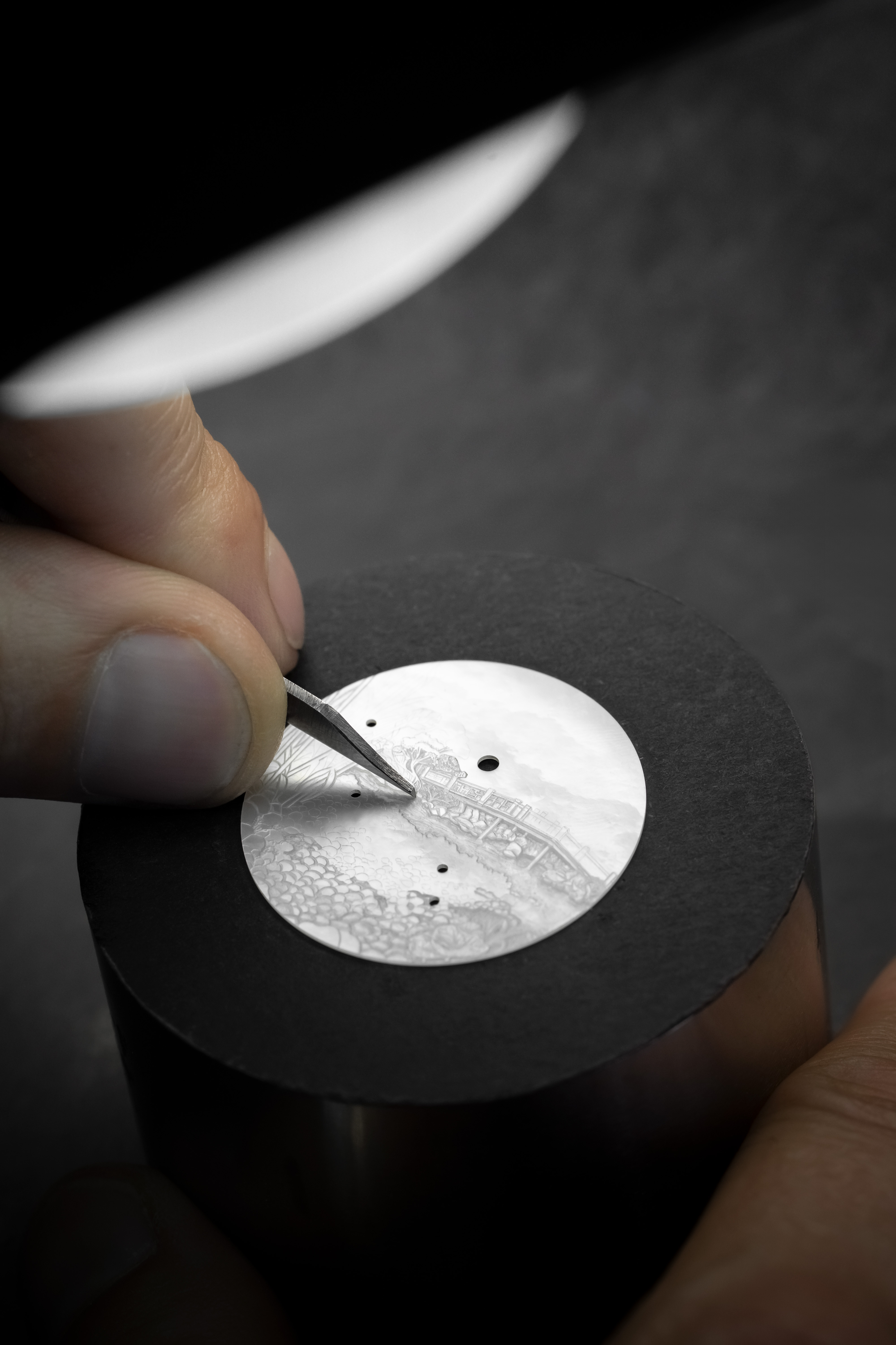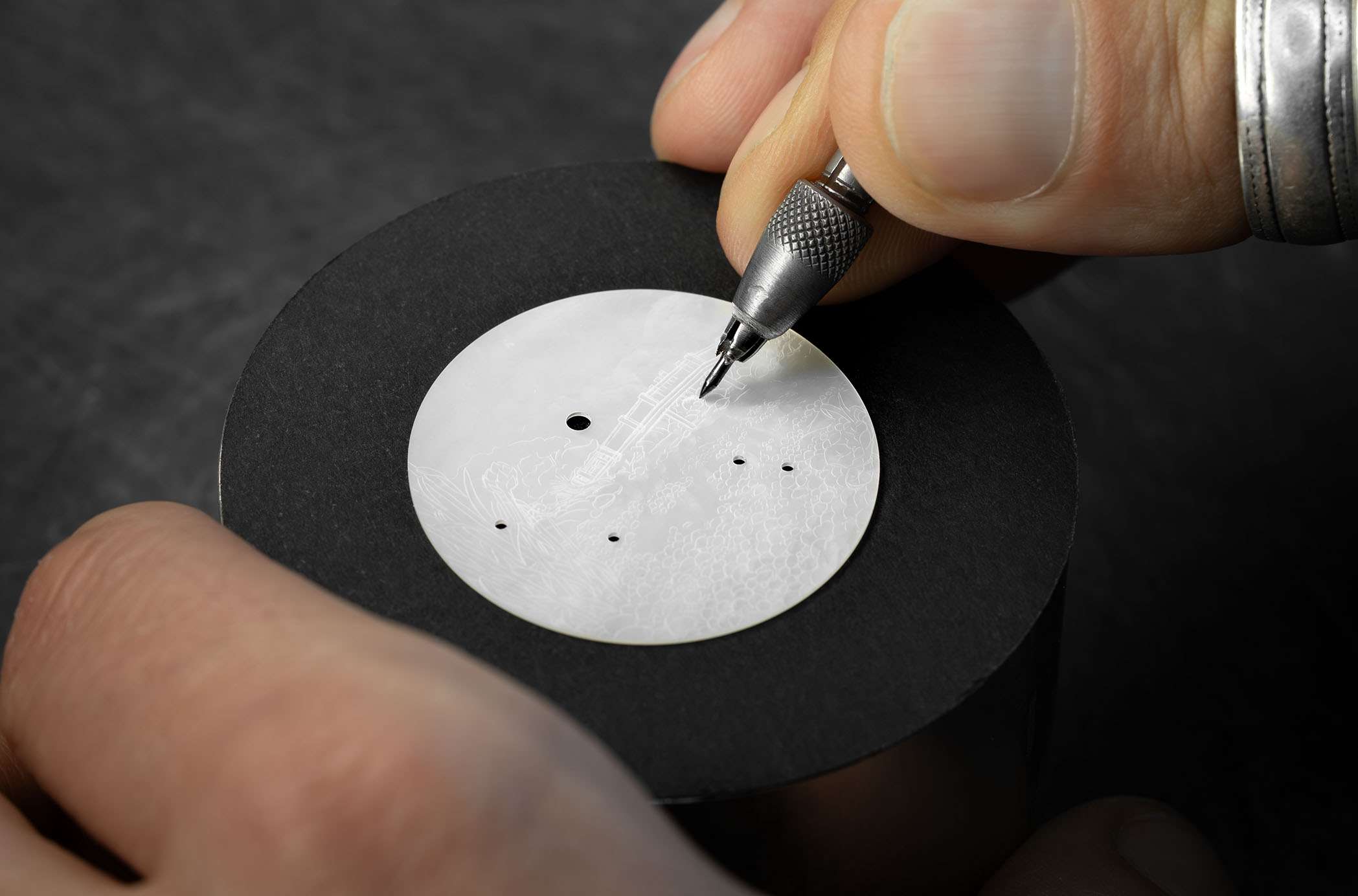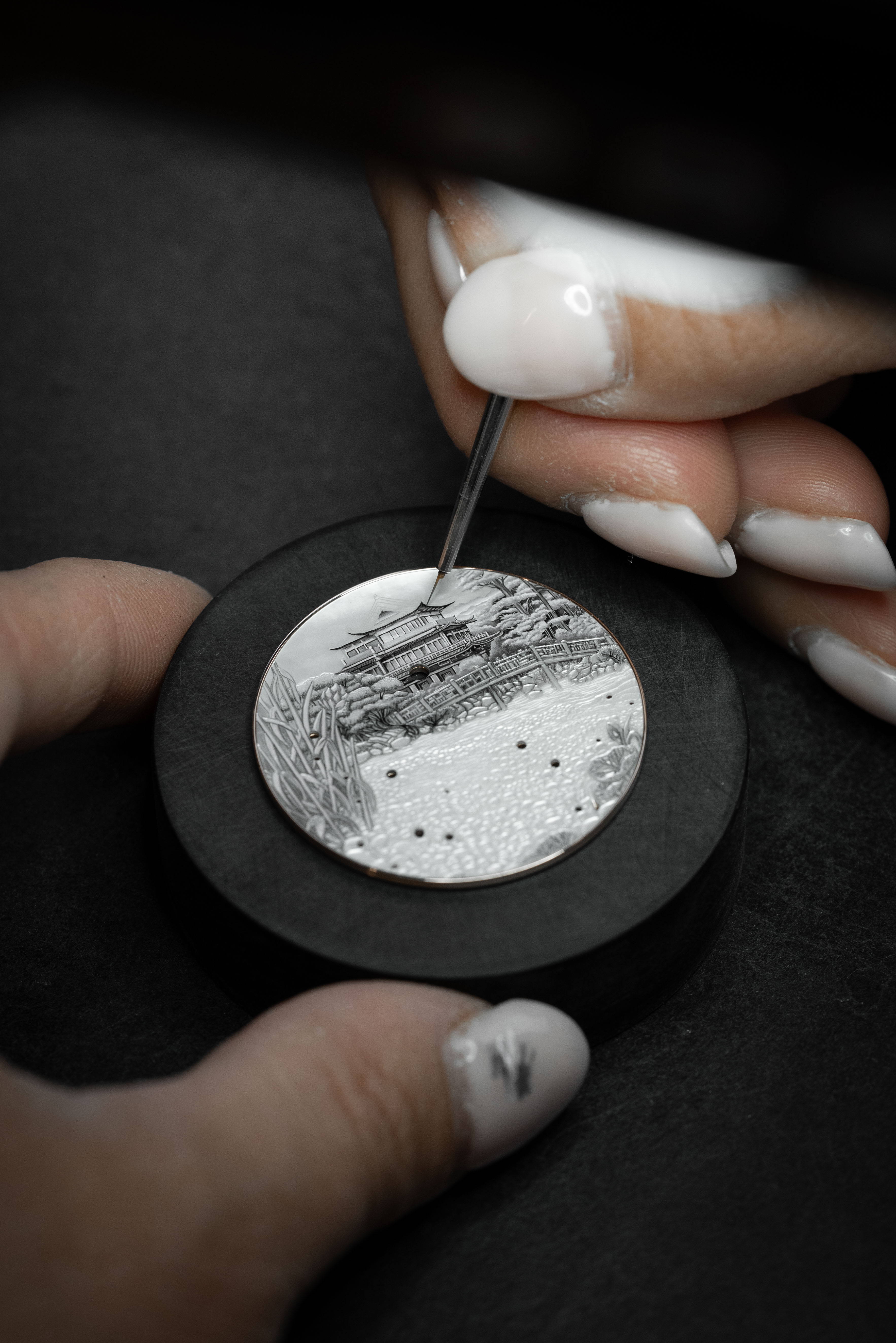 A unique piece created for and alongside a collector, the Petite Heure Minute Red Gold - Japanese Garden takes the art of mother-of-pearl engraving and carving to a whole new level. The dial and more than 20 appliques are crafted from this material, recreating the serenity of a living, three-dimensional space.