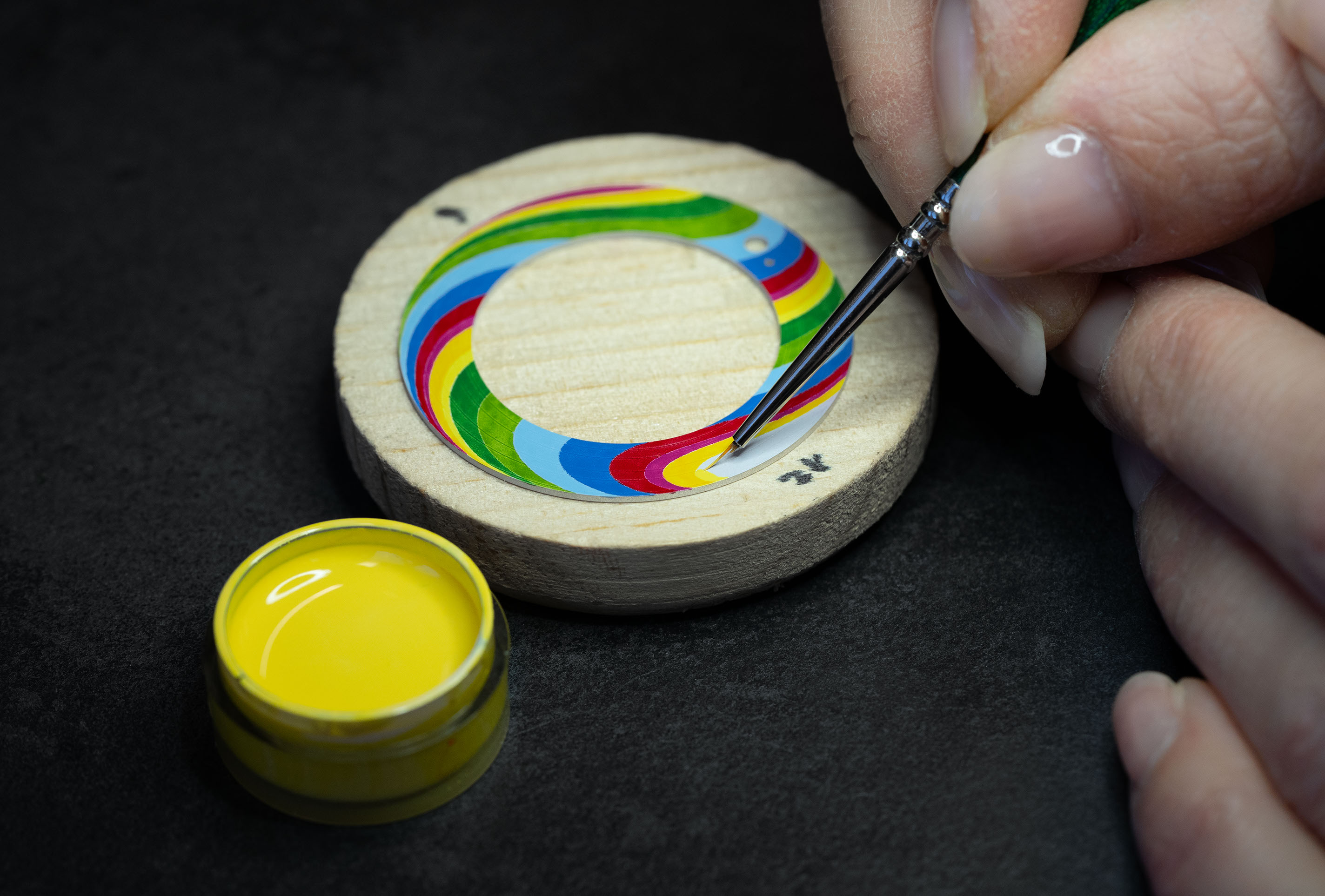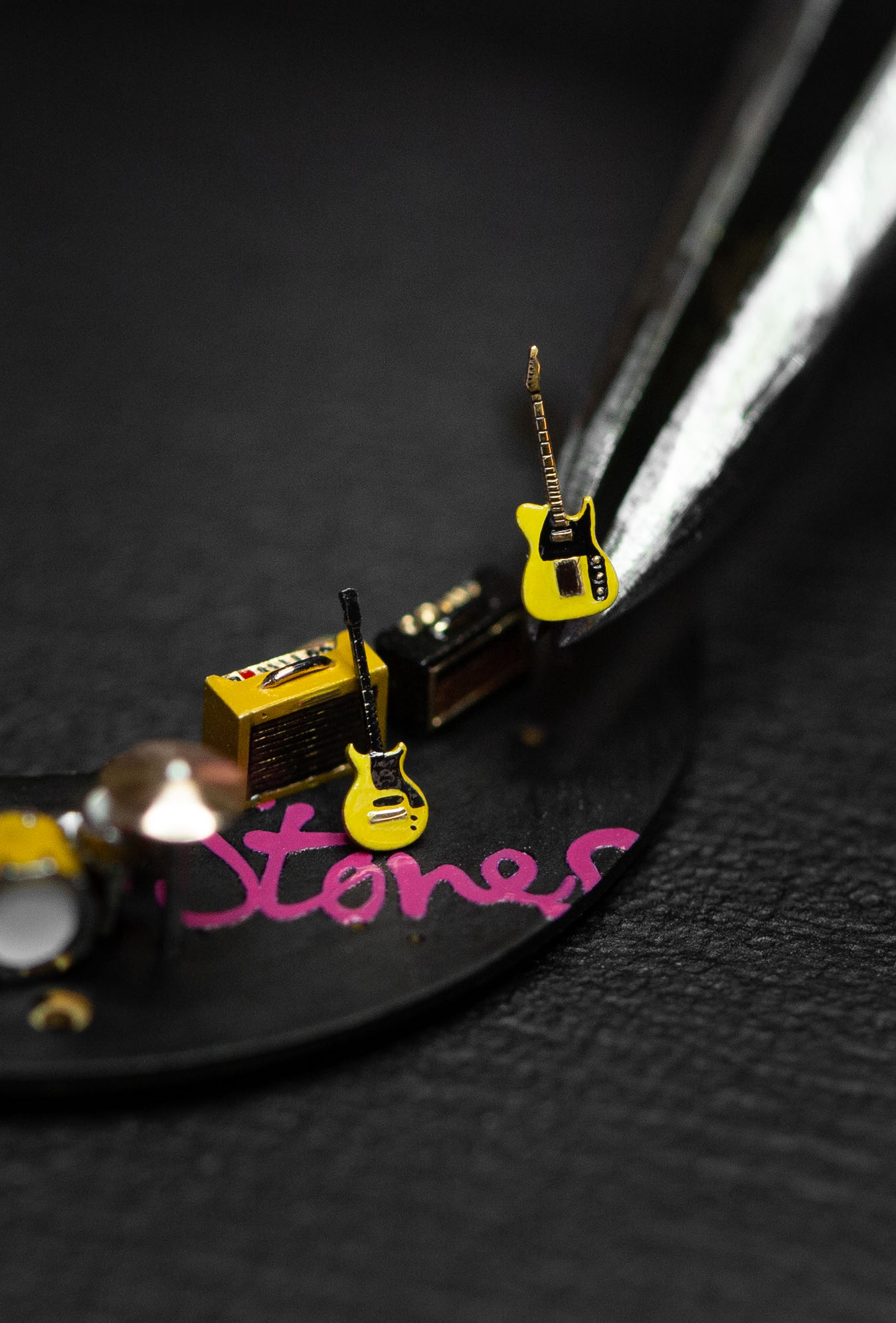 A unique timepiece, based on the Rolling Stones Automaton. An entire animated and colorful world for the child in all of us, thanks to a scenography entirely made and assembled by hand.