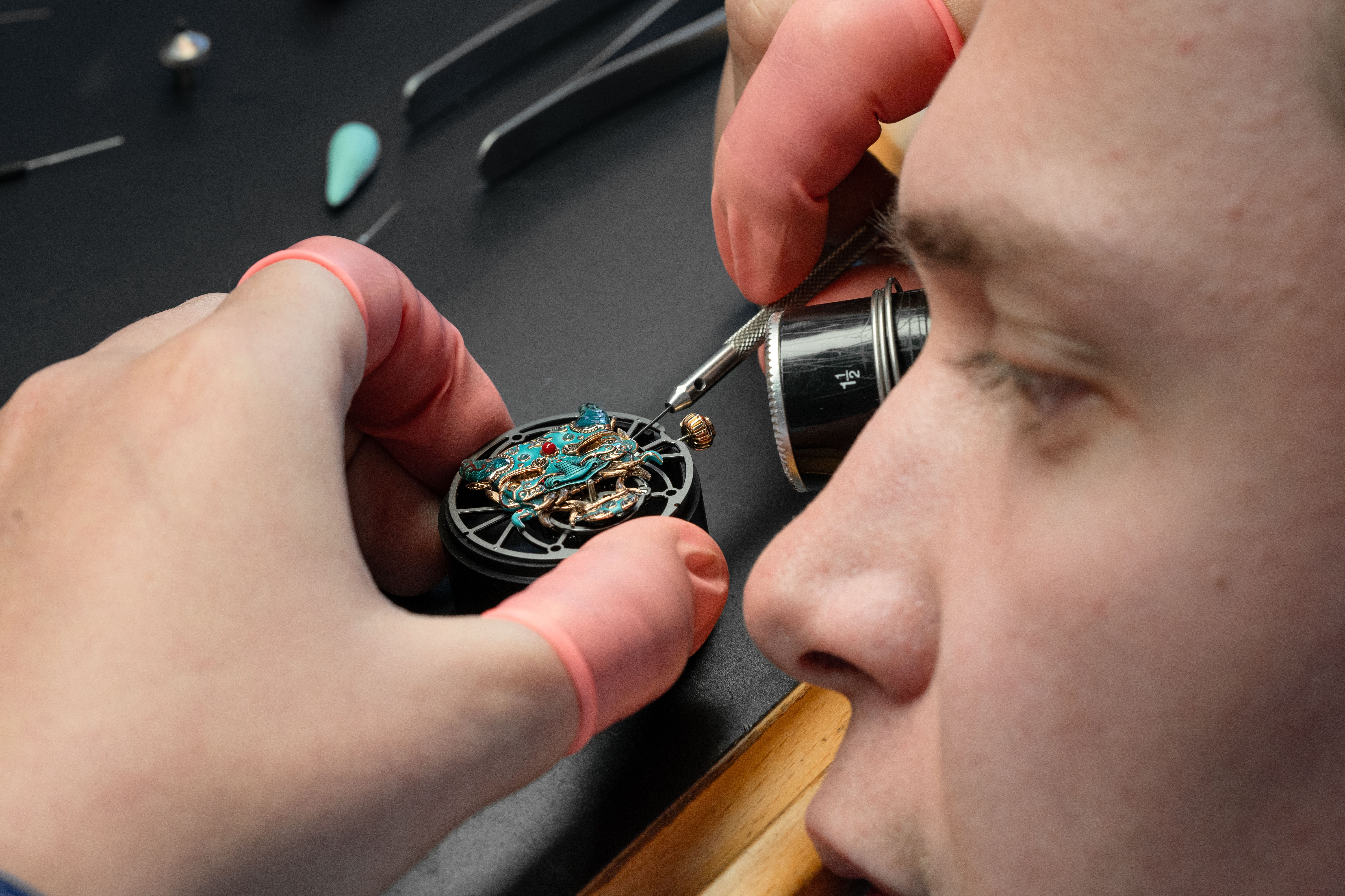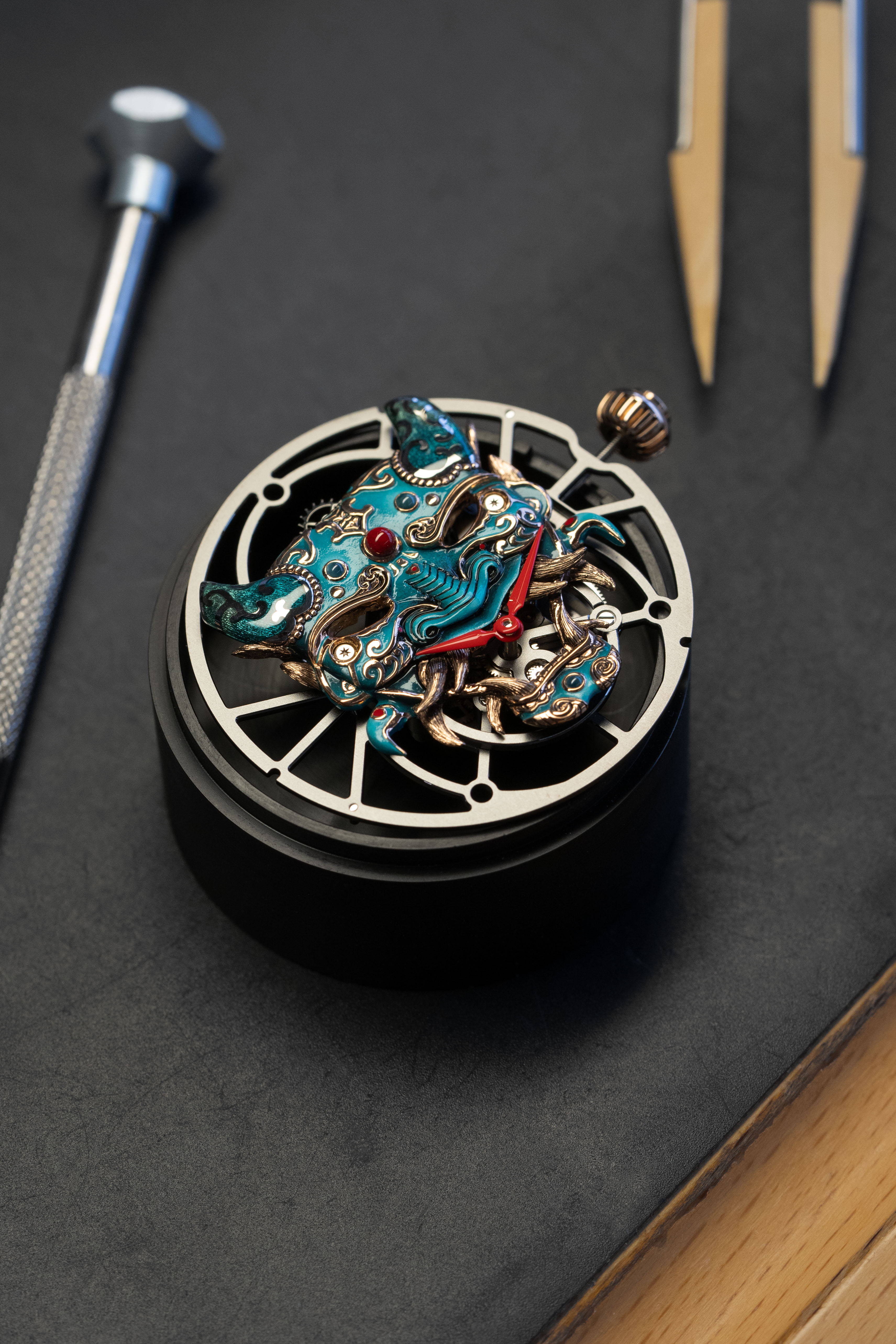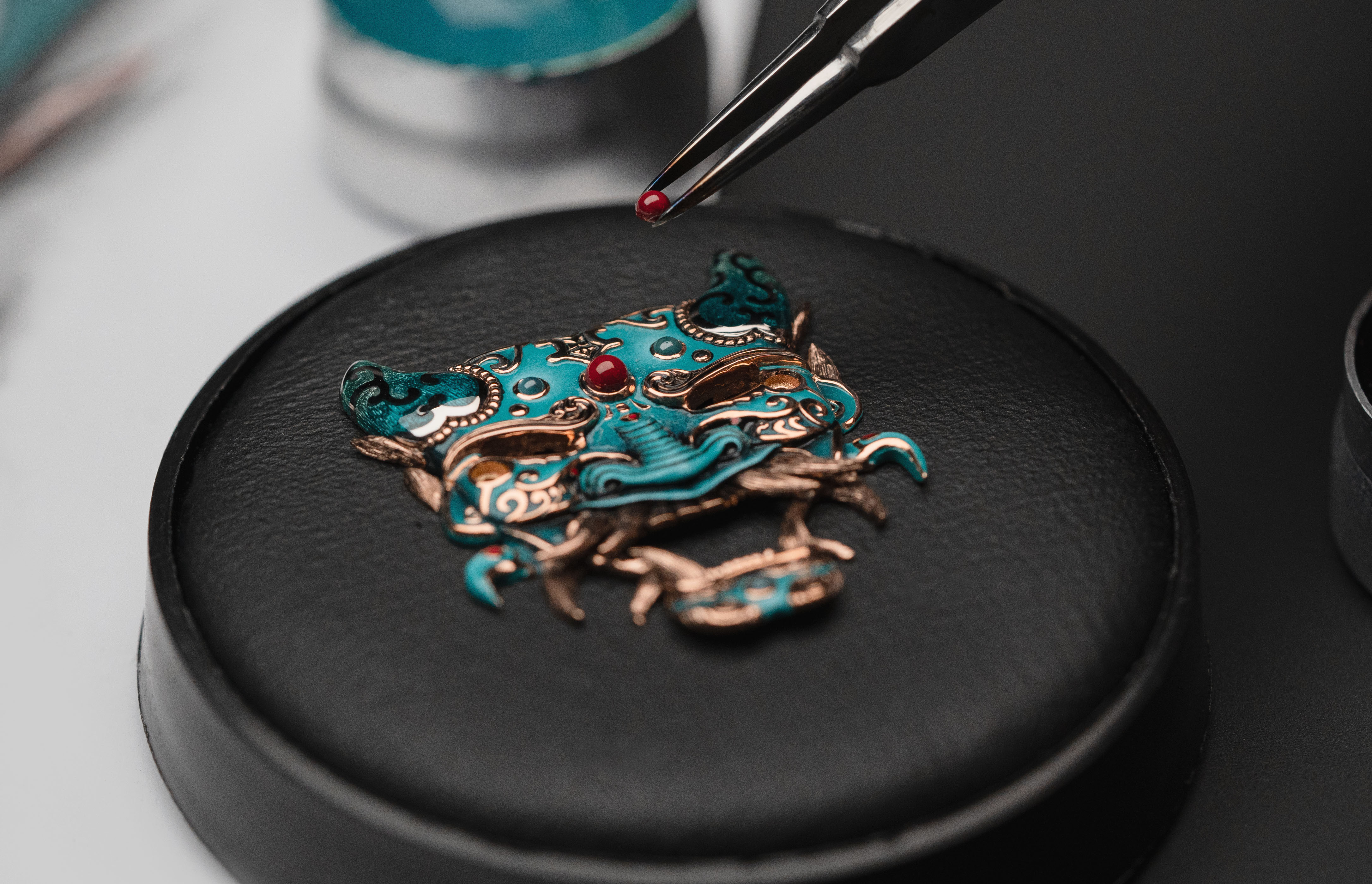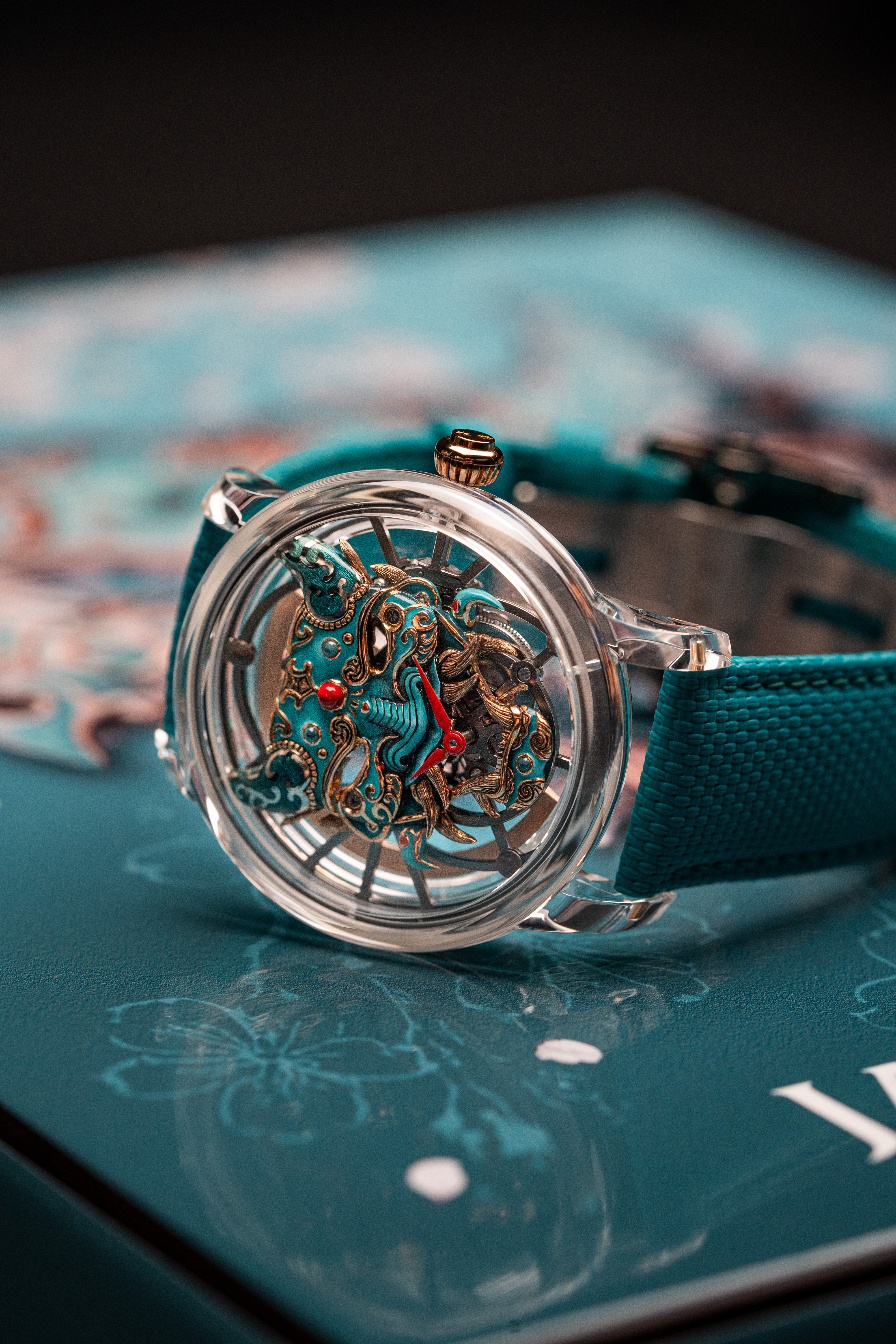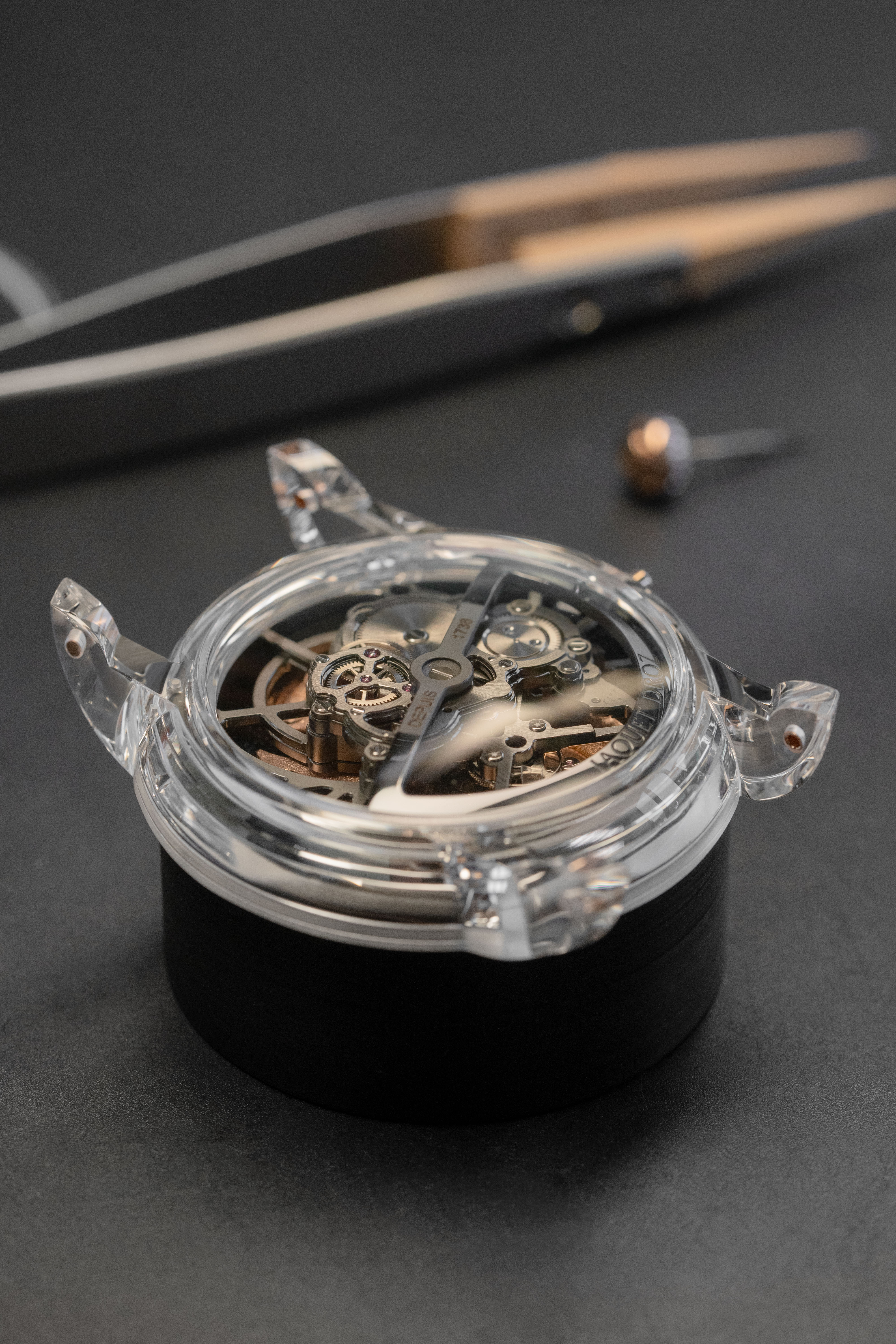 A unique tourbillon piece, the Tourbillon Skelet Sapphire – Bushidô embodies the power of the Japanese warrior's mask in a sapphire case. Expressive and superlative, combining 200 hours of manual craftsmanship and boasting an 8-day power reserve, it illustrates the Disruptive Legacy of Jaquet Droz with equal respect and freedom.