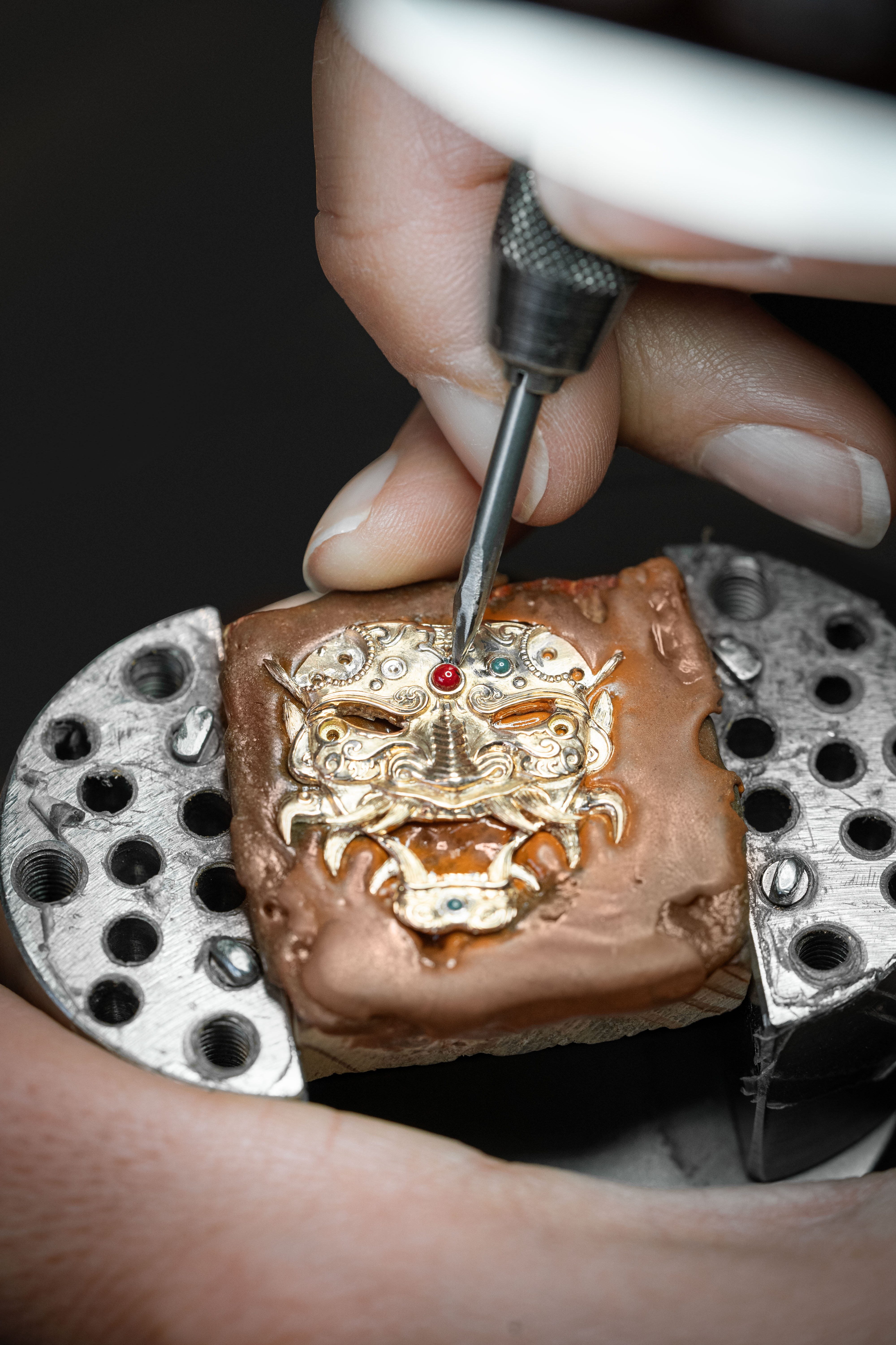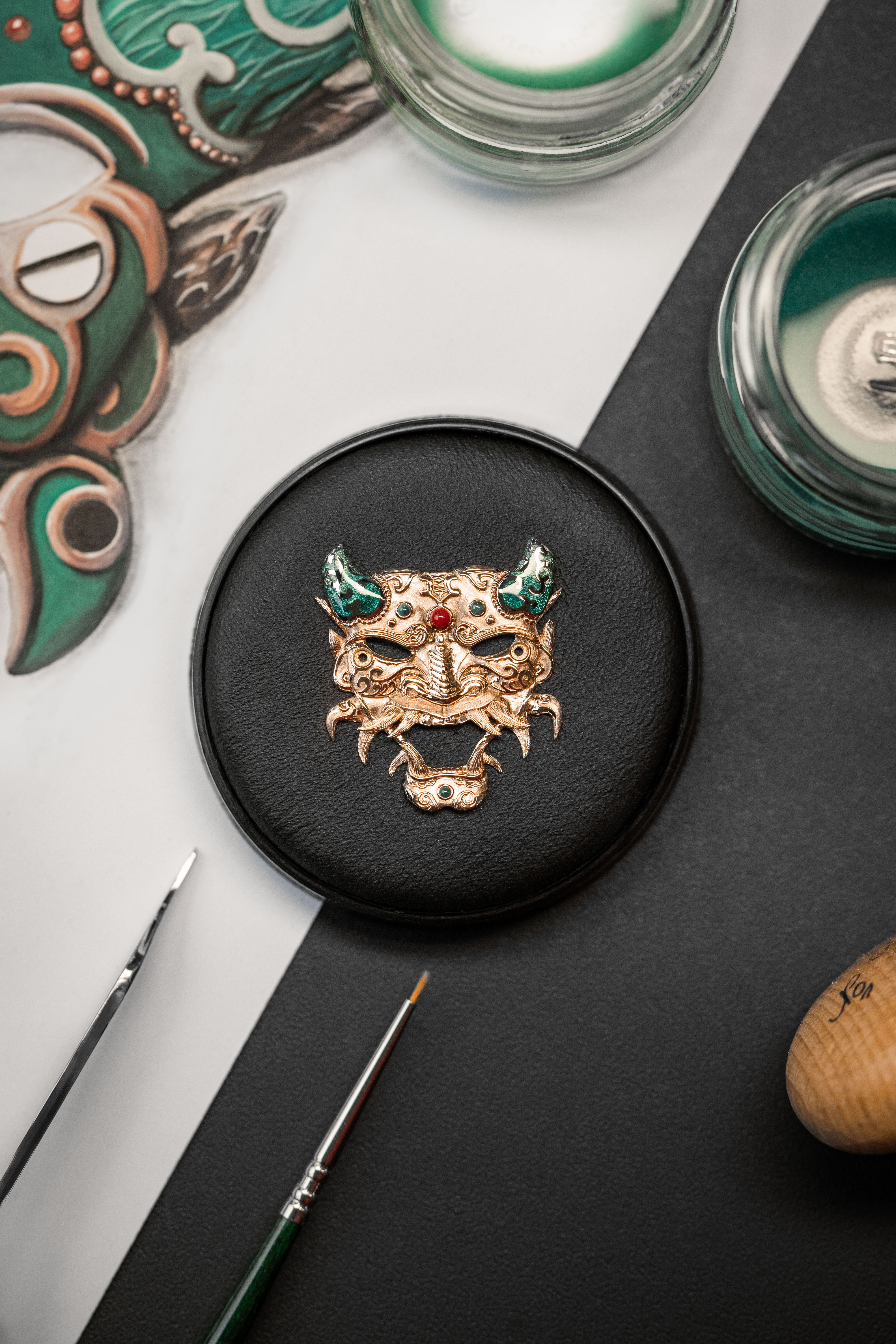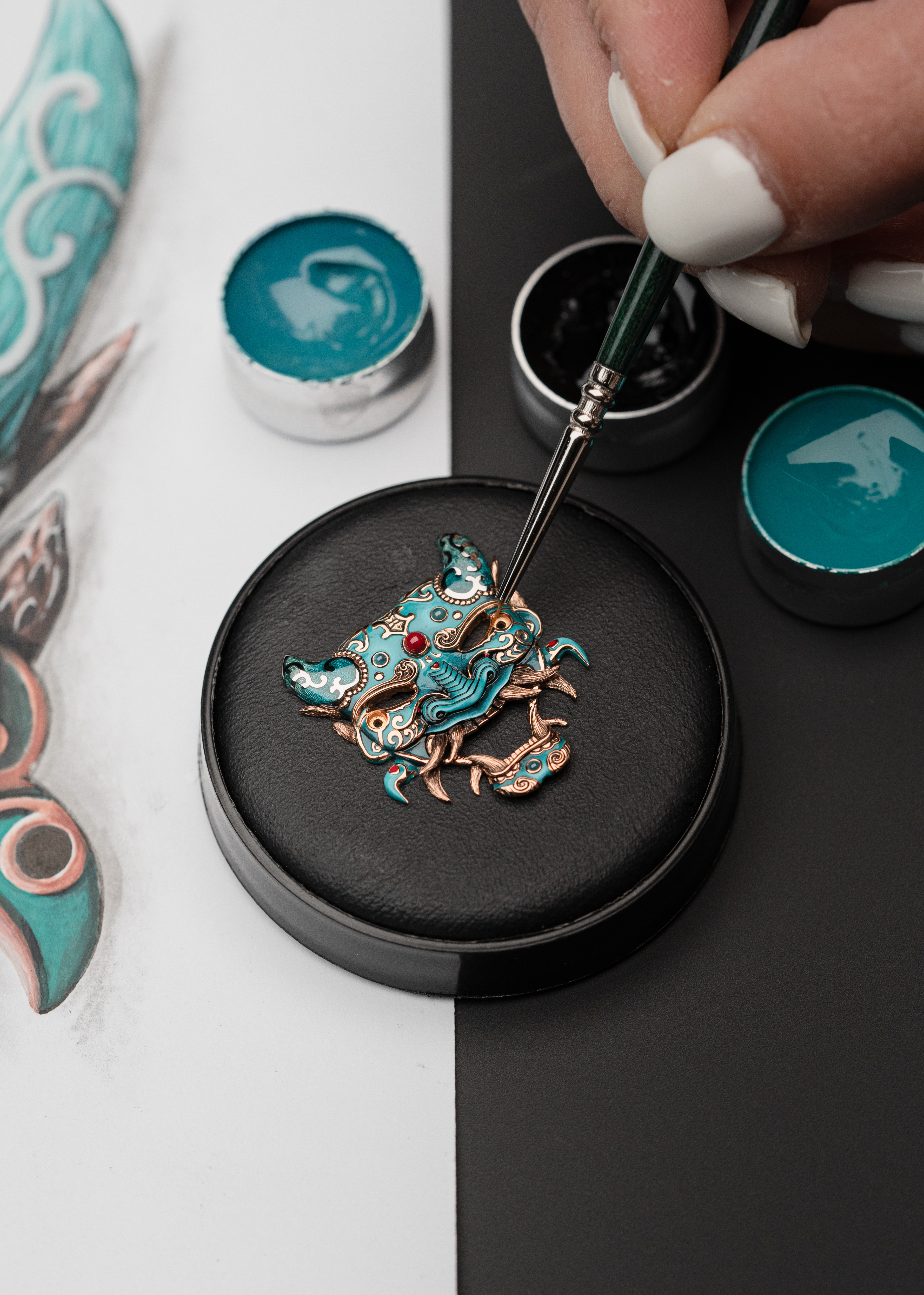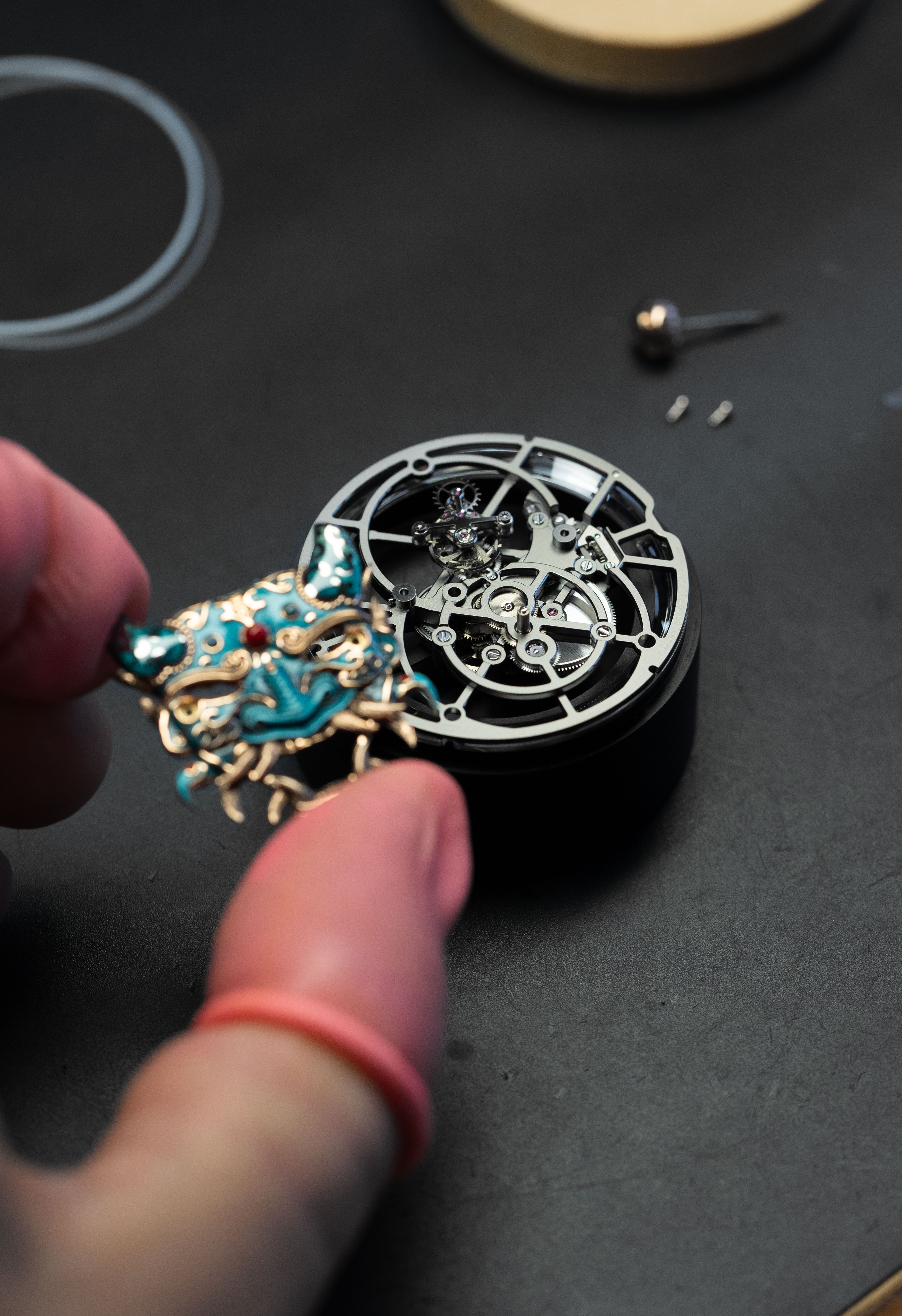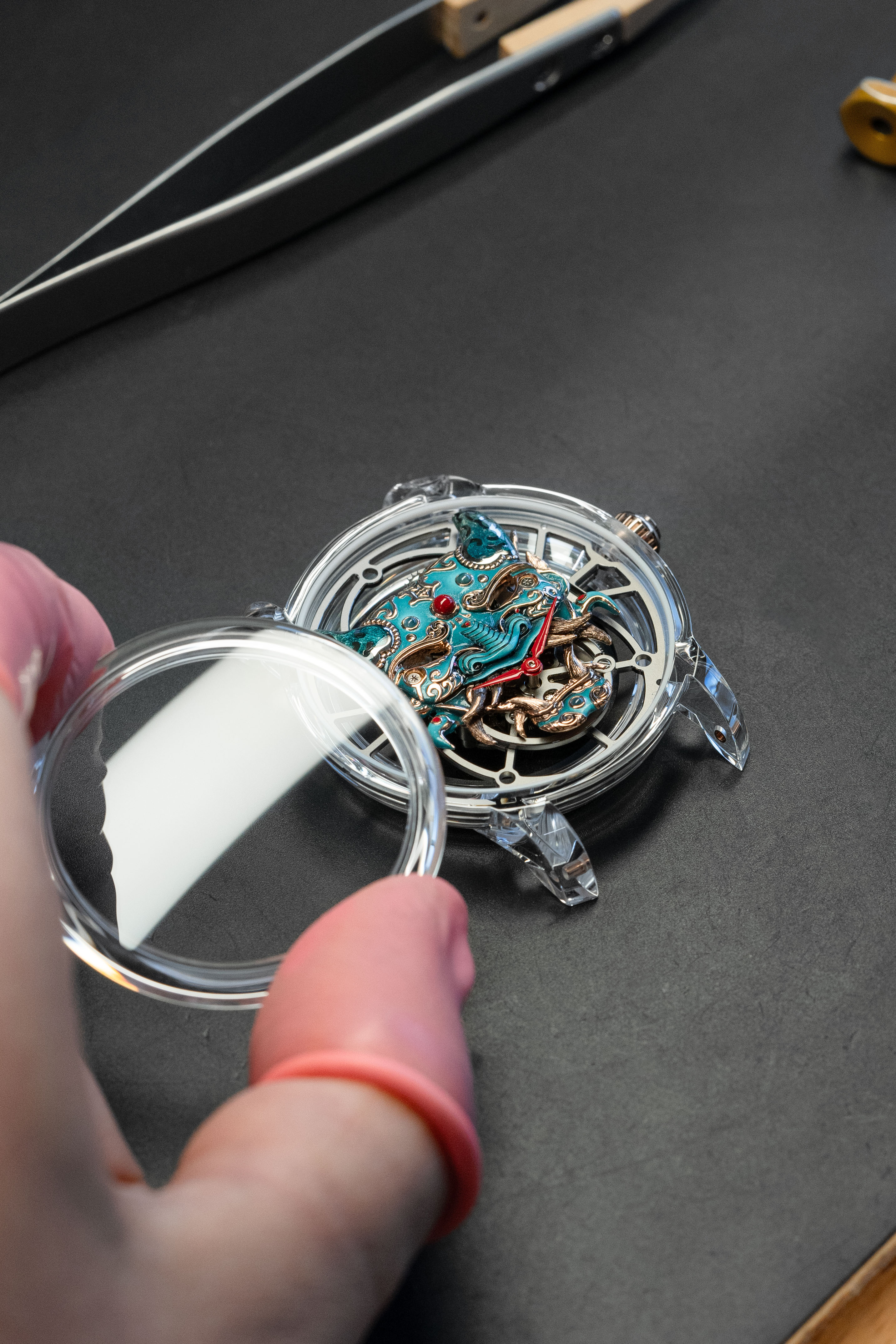 A unique tourbillon piece, the Tourbillon Skelet Sapphire – Bushidô embodies the power of the Japanese warrior's mask in a sapphire case. Expressive and superlative, combining 200 hours of manual craftsmanship and boasting an 8-day power reserve, it illustrates the Disruptive Legacy of Jaquet Droz with equal respect and freedom.