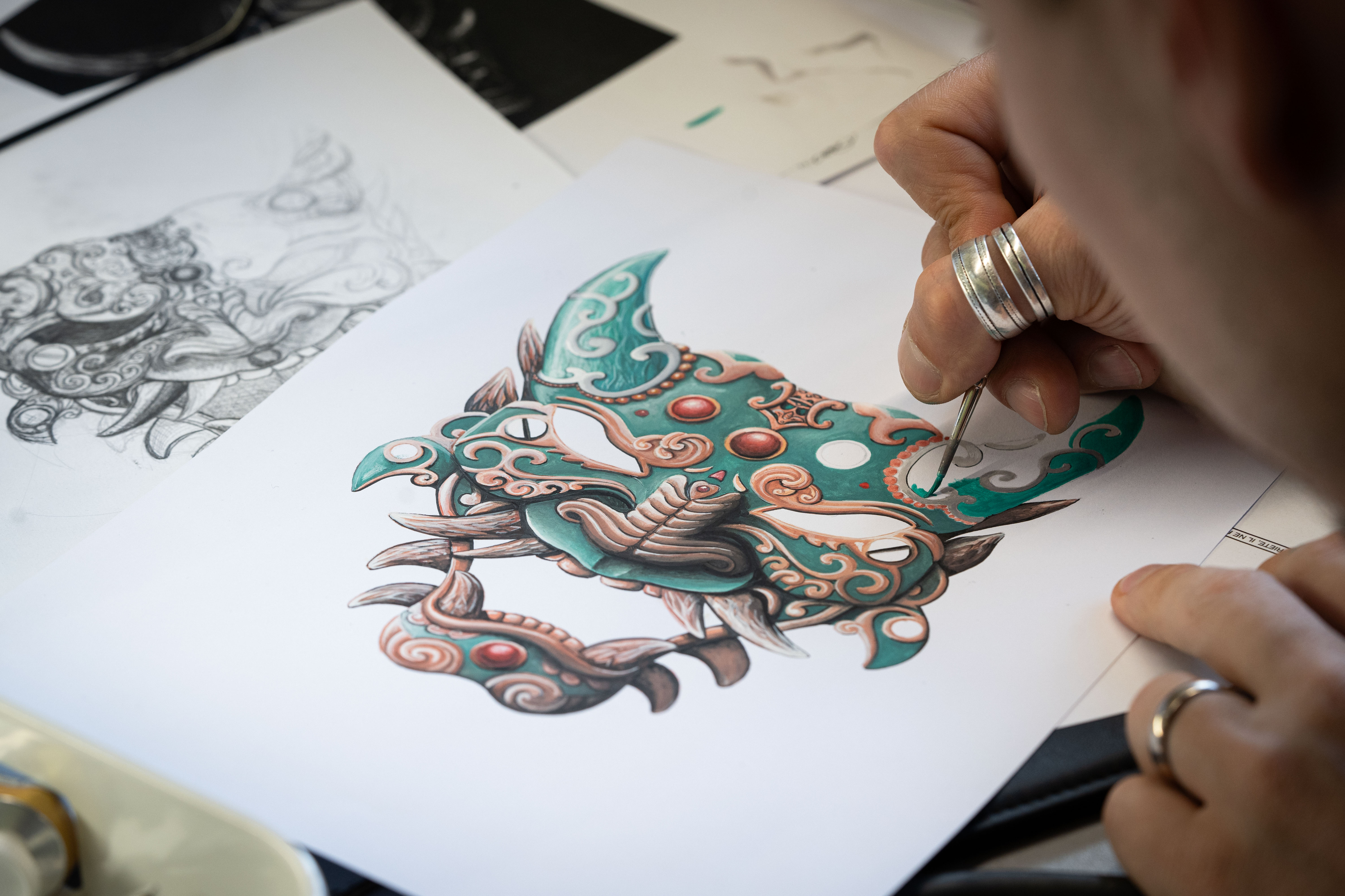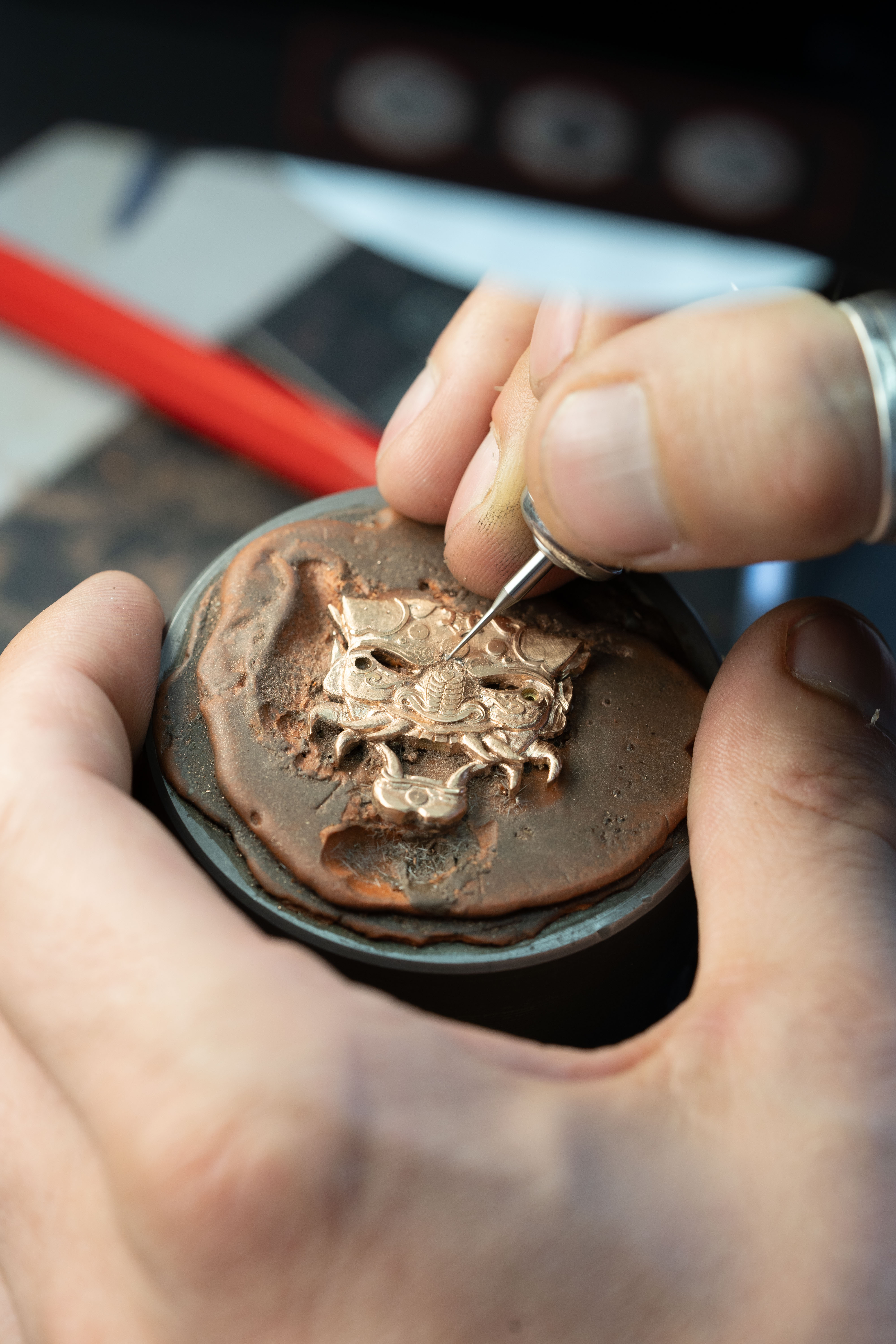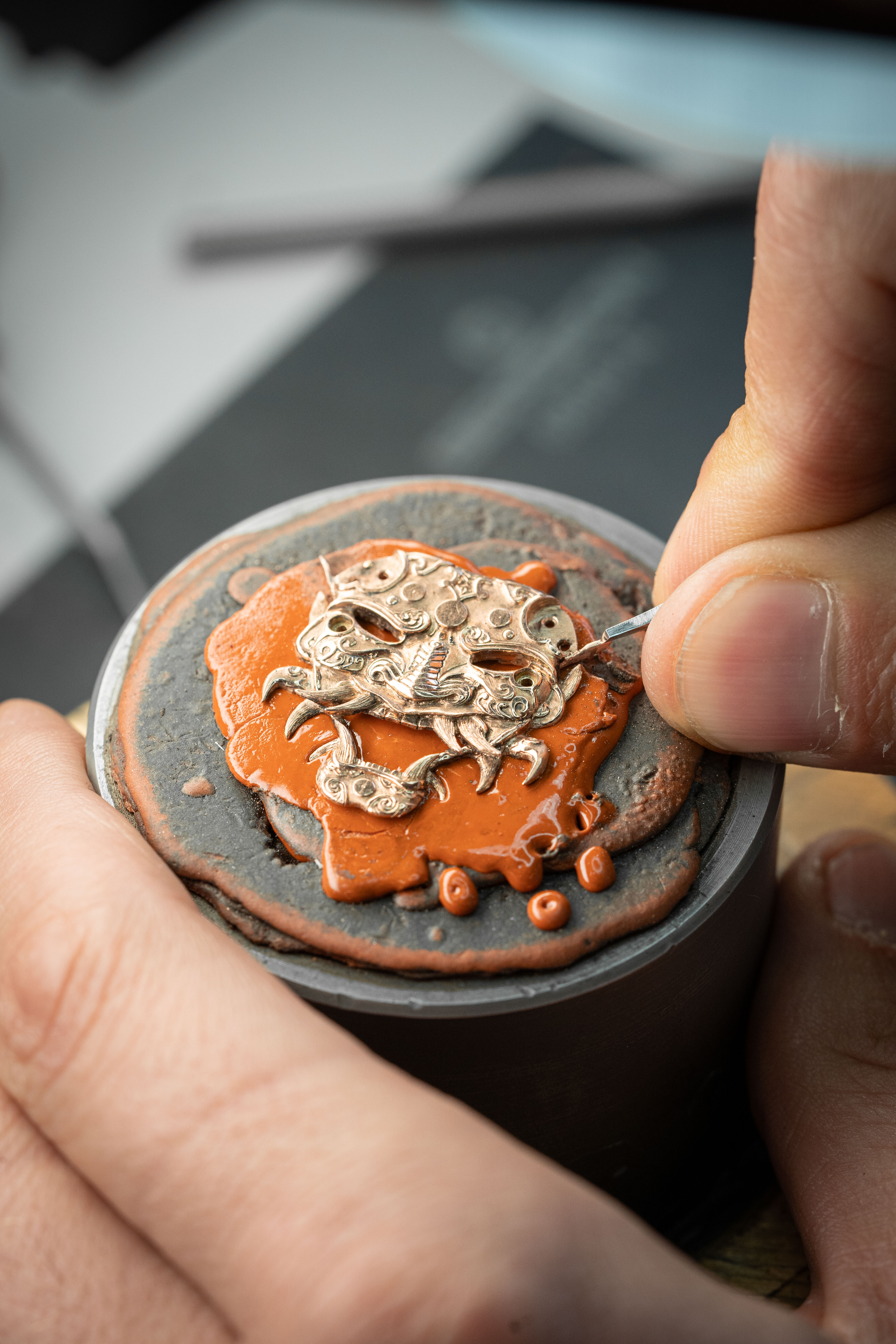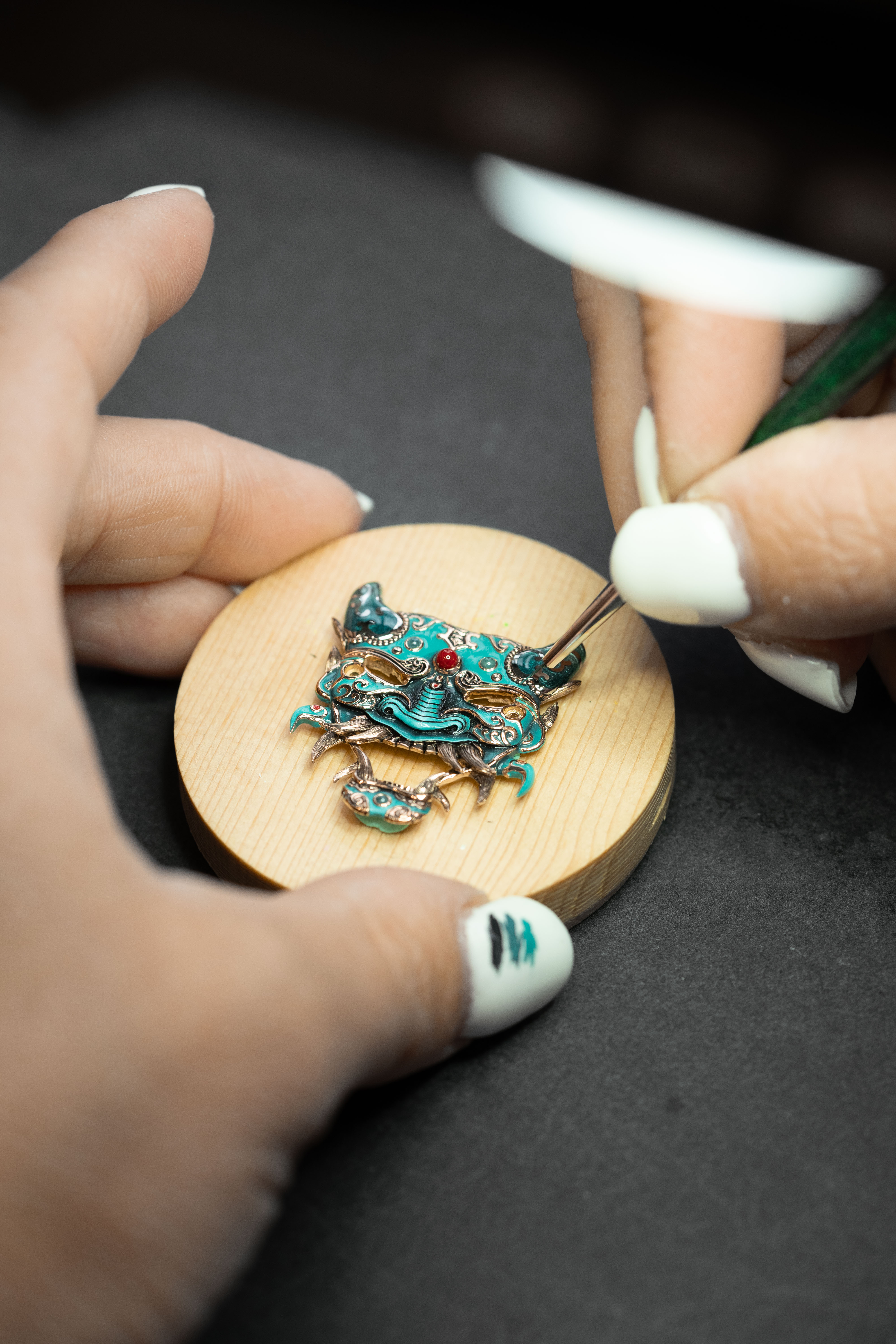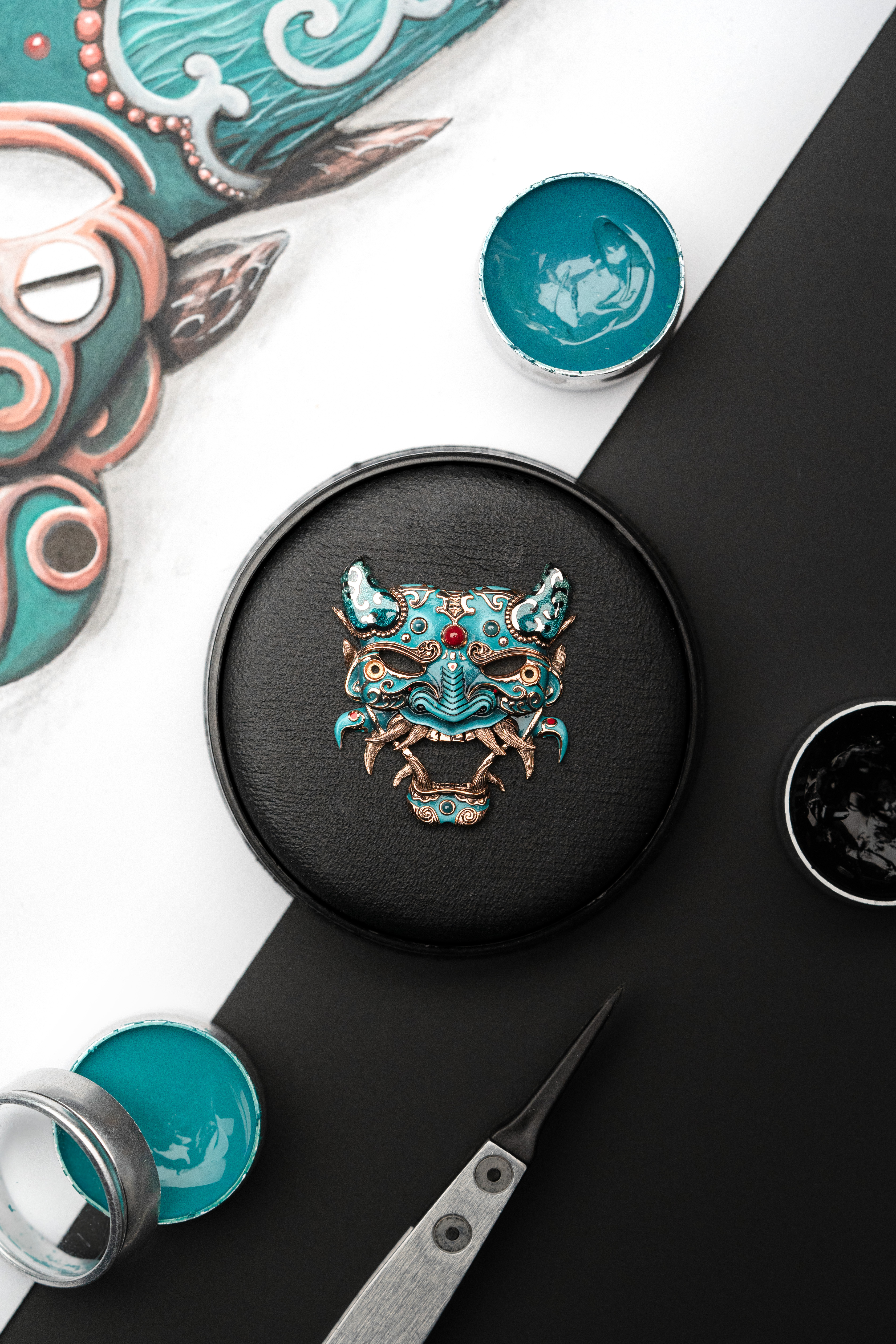 A unique tourbillon piece, the Tourbillon Skelet Sapphire – Bushidô embodies the power of the Japanese warrior's mask in a sapphire case. Expressive and superlative, combining 200 hours of manual craftsmanship and boasting an 8-day power reserve, it illustrates the Disruptive Legacy of Jaquet Droz with equal respect and freedom.